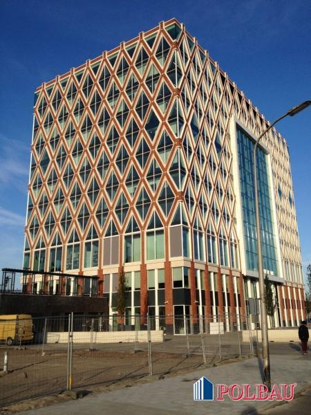 Budowa realizowana w typowym dla rynku holenderskiego mieszanym systemie konstrukcyjnym (żelbet i prefabrykaty). Zakres robót obejmował prace szalunkowe, zbrojarskie, betoniarskie (fundamenty, podciągi, ściany nośne itp.) oraz ciesielskie prace pomocnicze wykonywane podczas osadzania gotowych elementów elewacji.