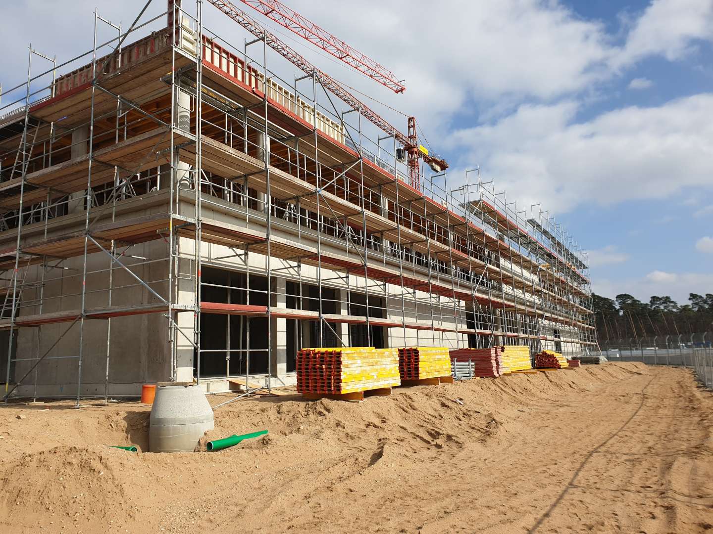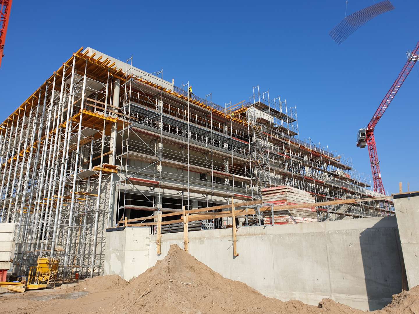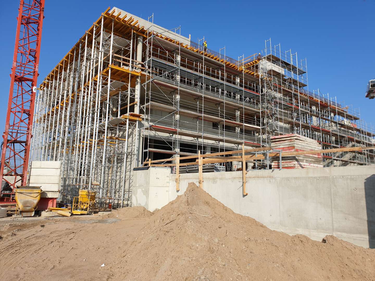 Zakres prac obejmuje roboty żelbetowe stanu surowego.