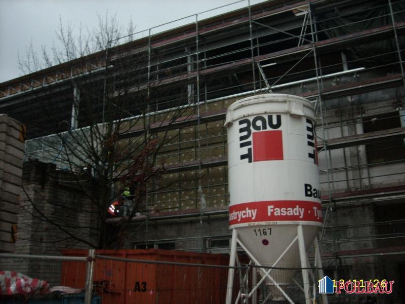 - roboty rozbiórkowe zewnętrzne (okładziny kamienne, część stropodachu),