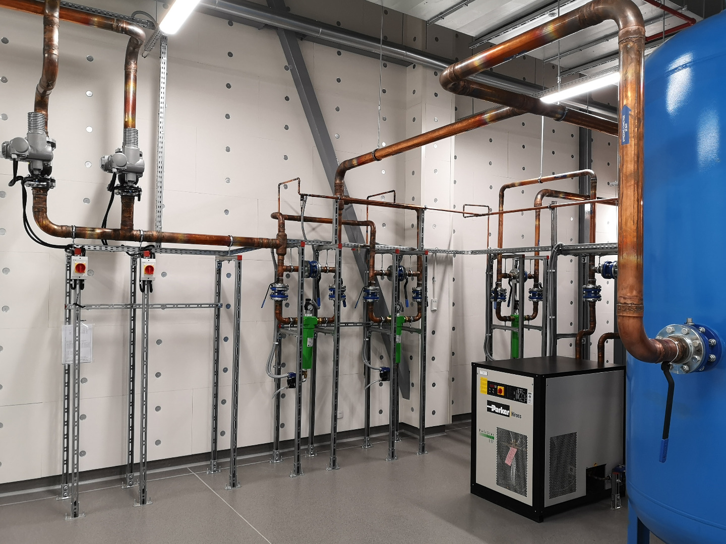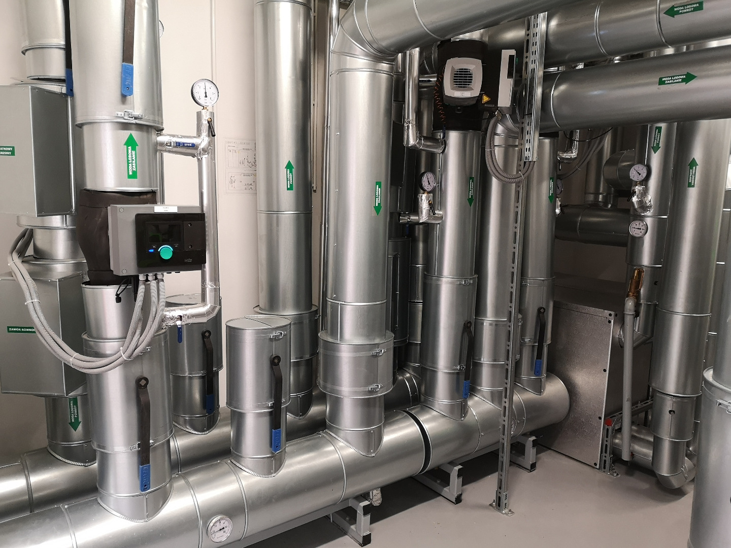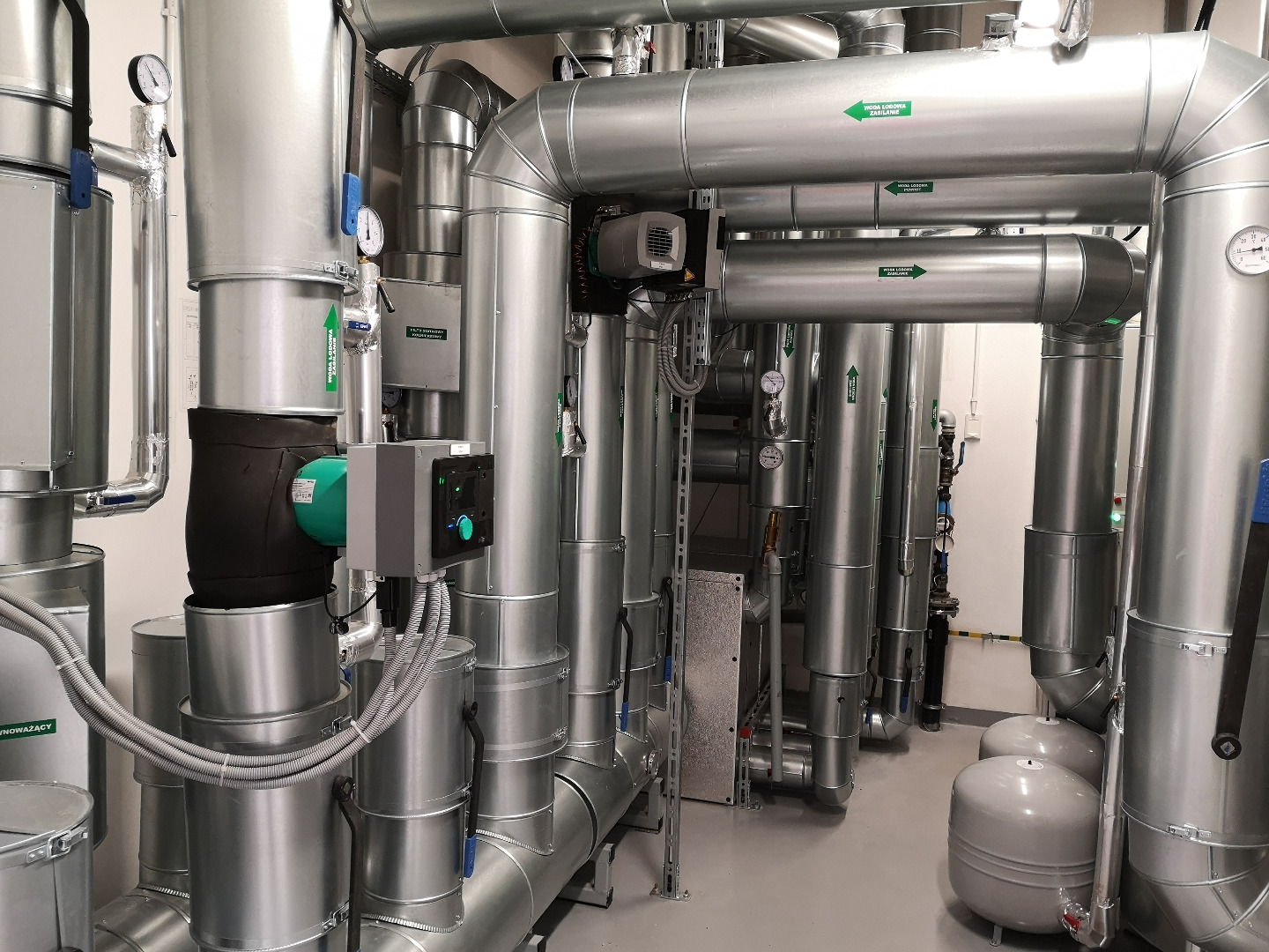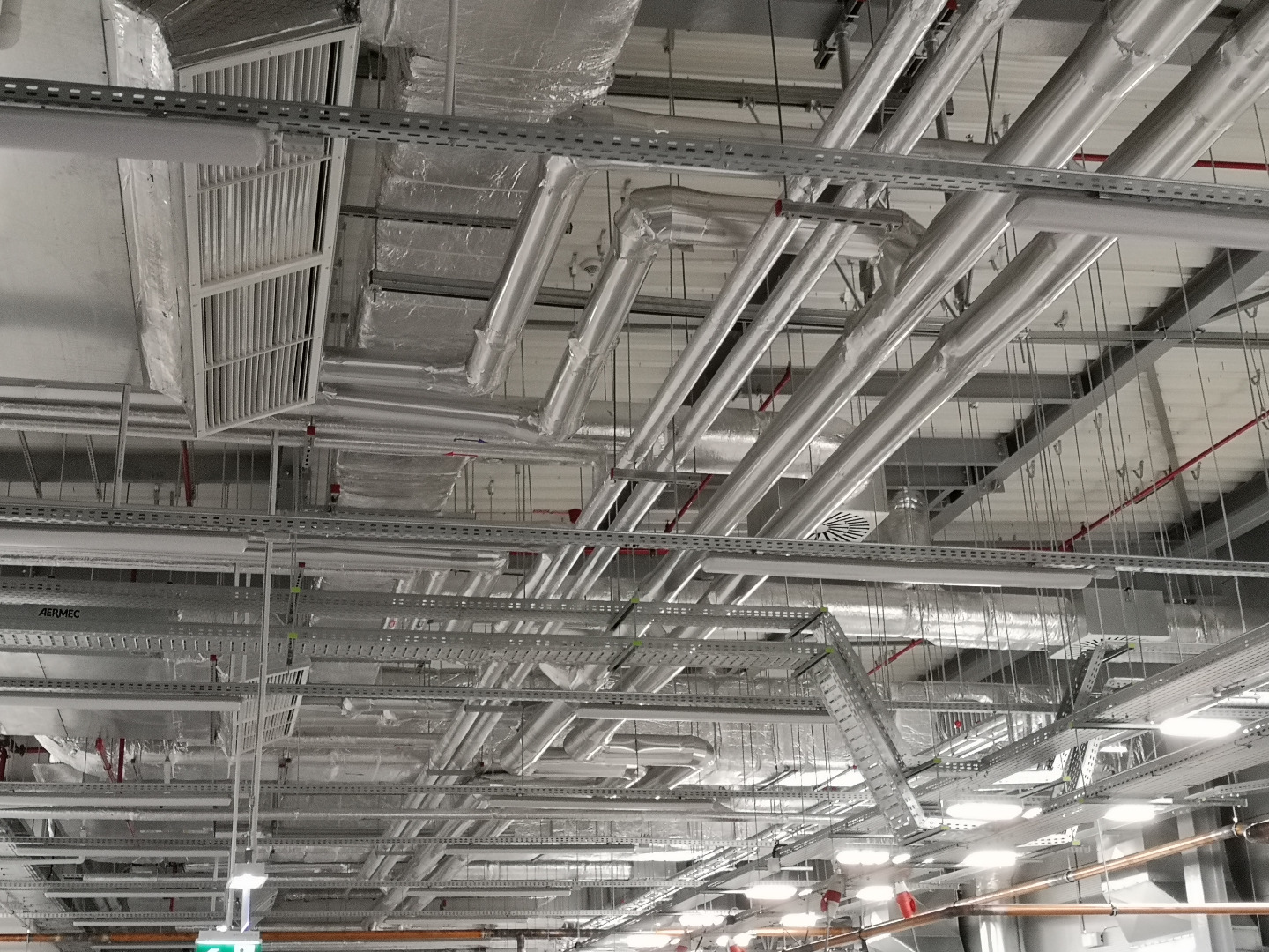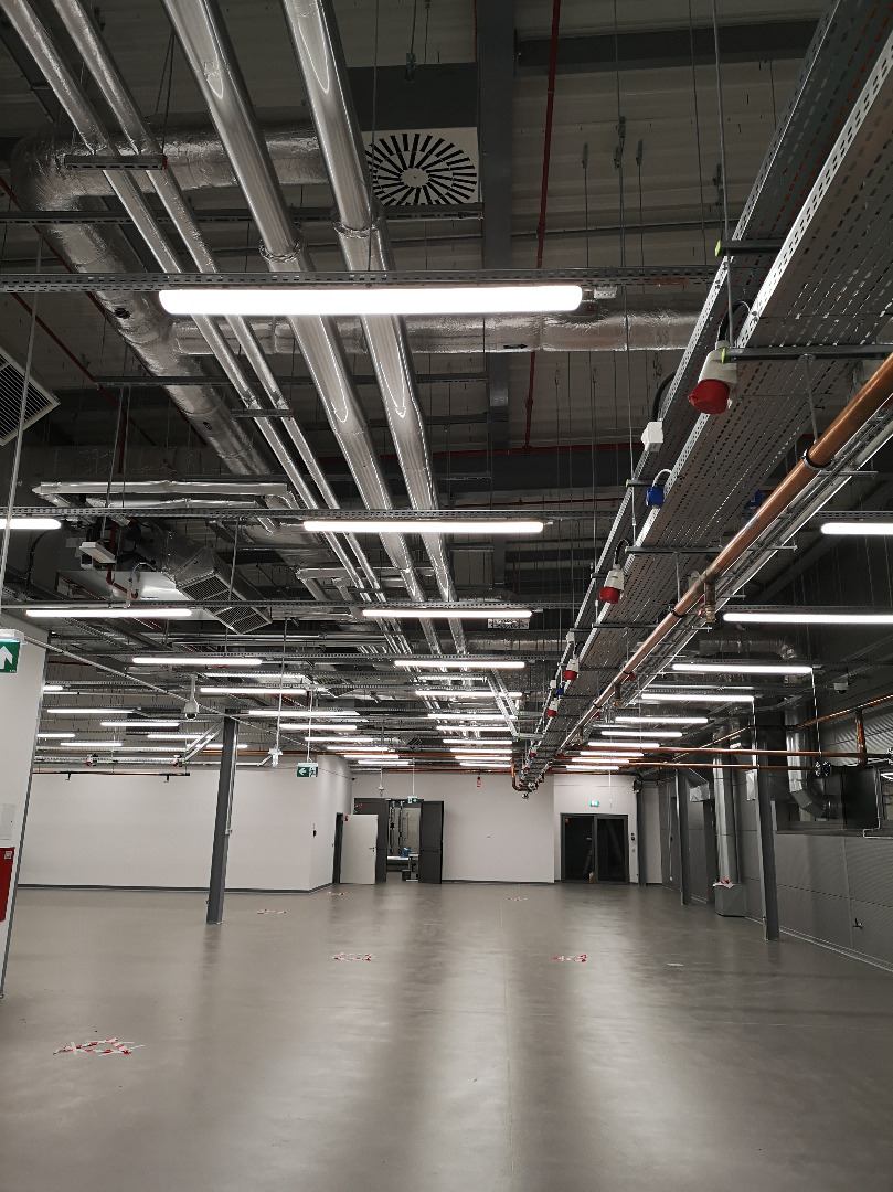 Wykonane instalacje: elektryczna, ssp, automatyka, c.o., woda lodowa, wod-kan., sprężone powietrze, klimatyzacja, wentylacja, tryskaczowa.