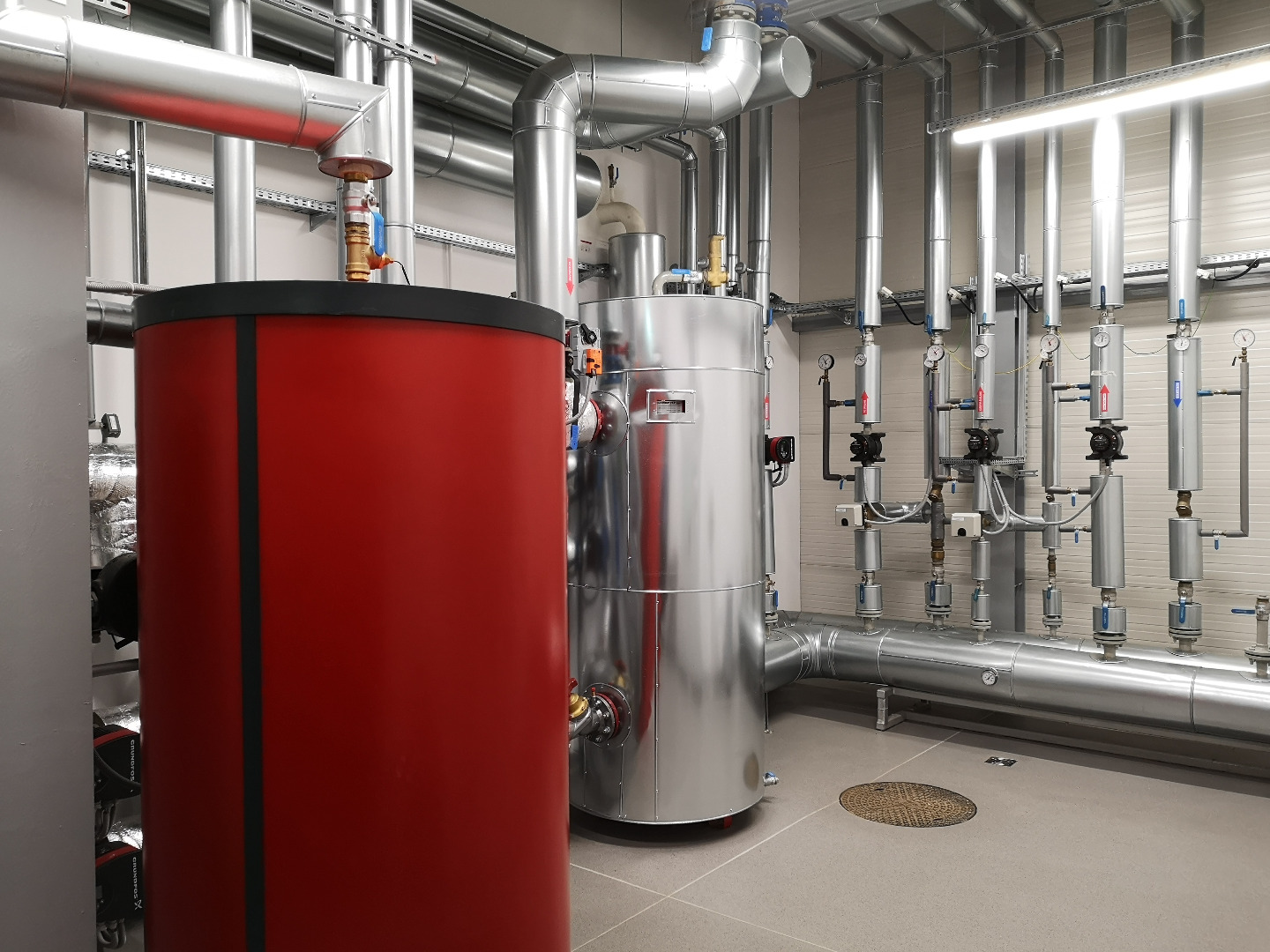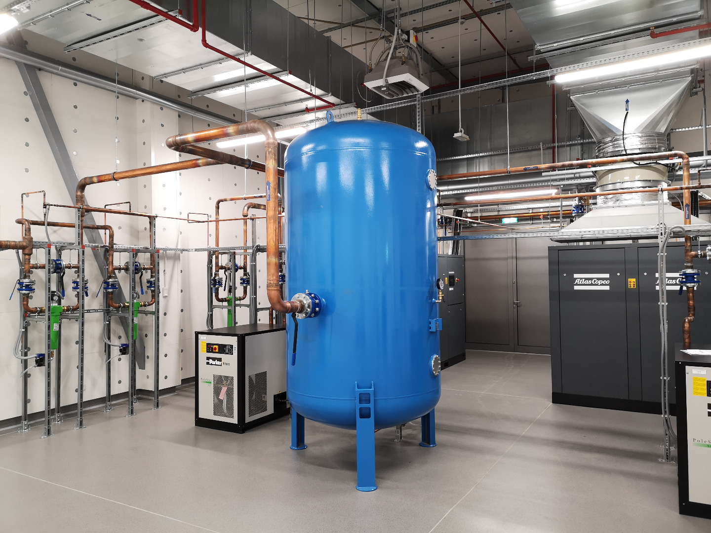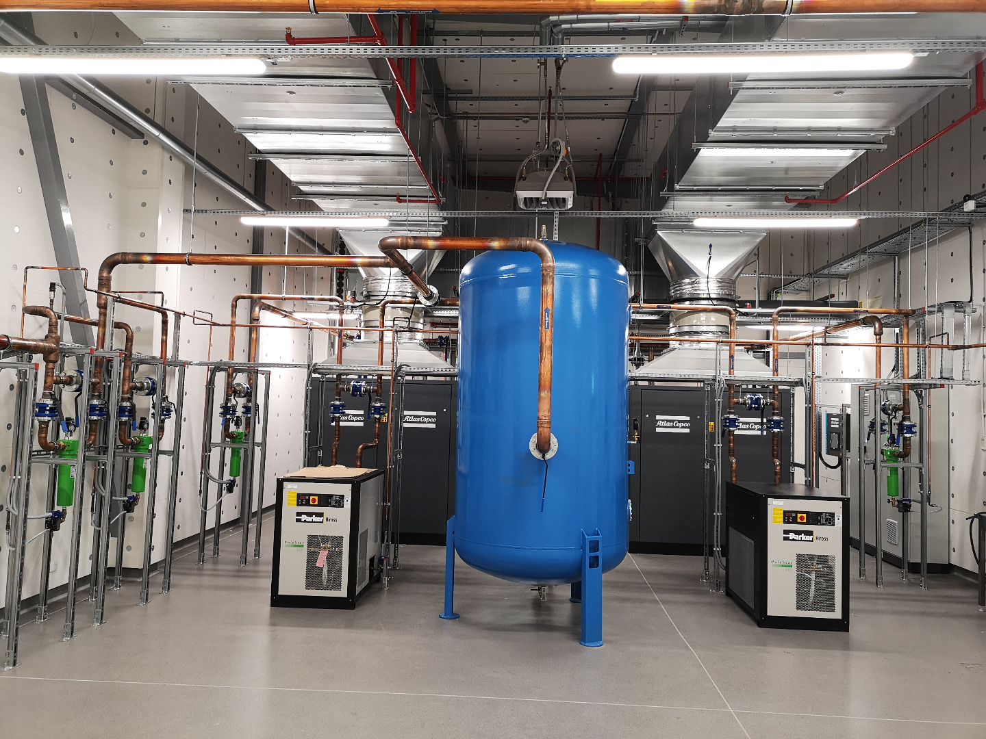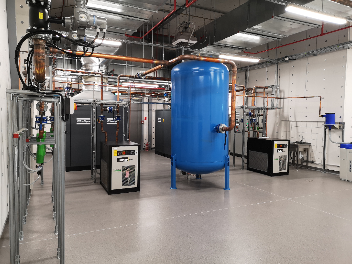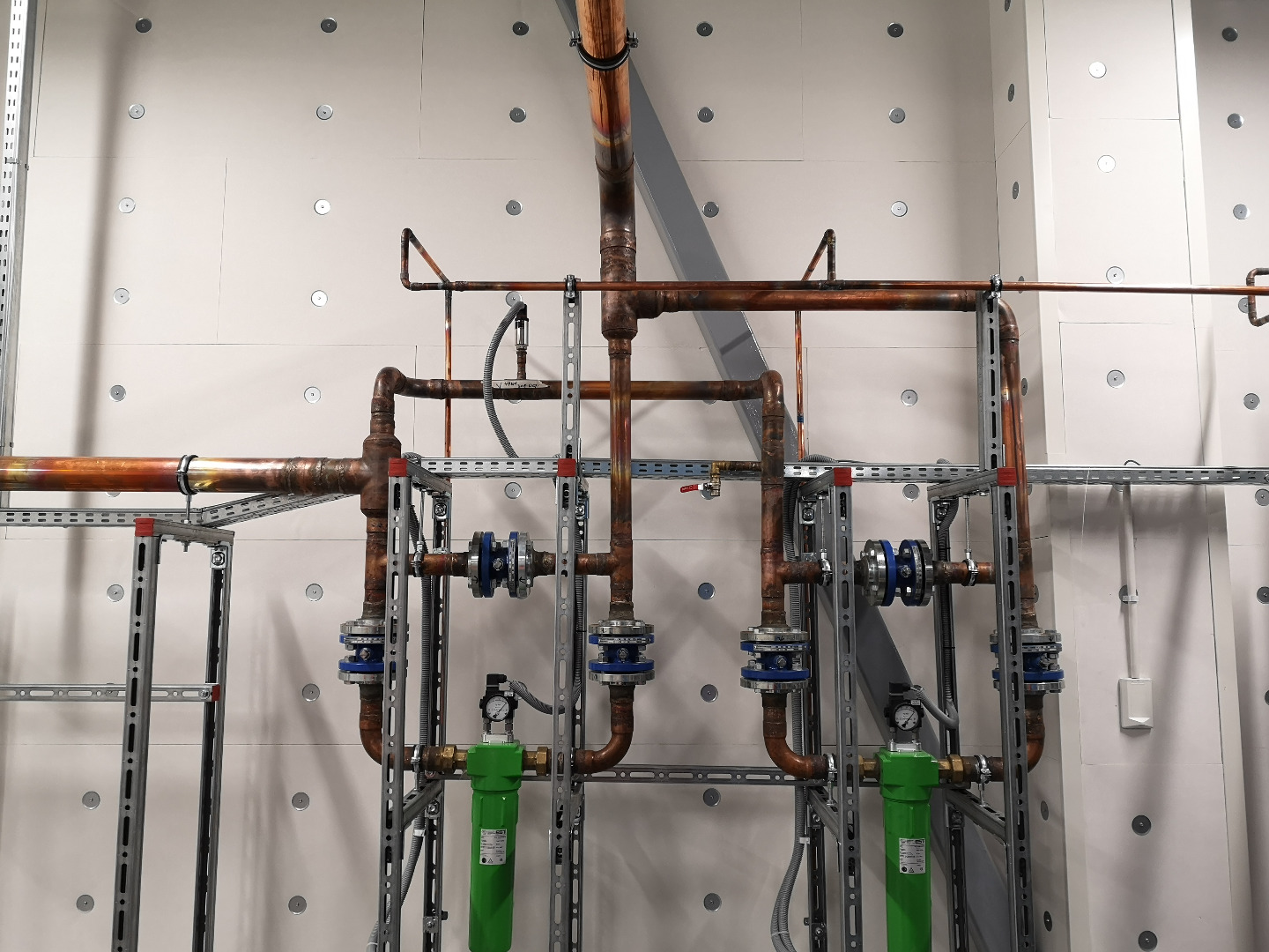 Wykonane instalacje: elektryczna, ssp, automatyka, c.o., woda lodowa, wod-kan., sprężone powietrze, klimatyzacja, wentylacja, tryskaczowa.