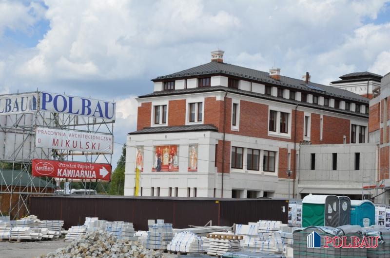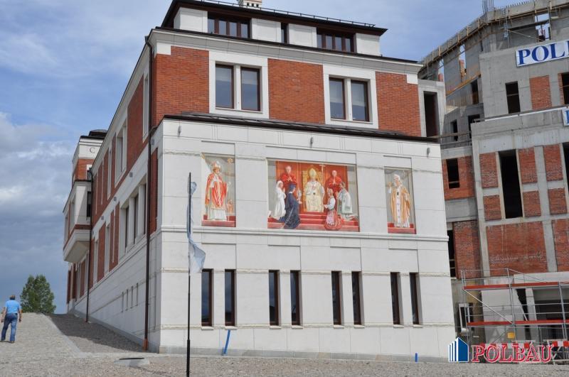 3. Kościół, który dzieli się na kościół dolny i górny. Kościół dolny, w którym znajdują się relikwie Jana Pawła II użytkowany jest już od roku; odbywają się w nim msze św. Ciężar prac skupia się aktualnie na realizacji kościoła górnego.