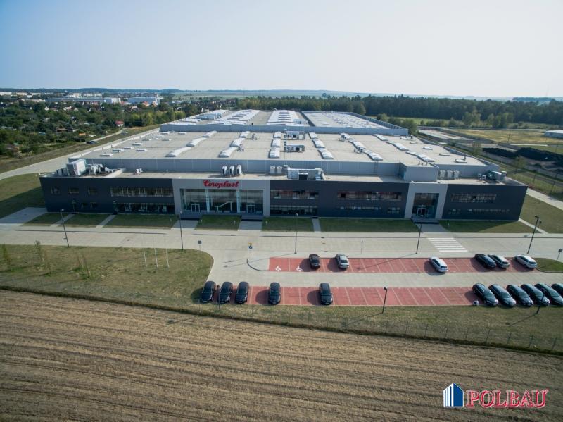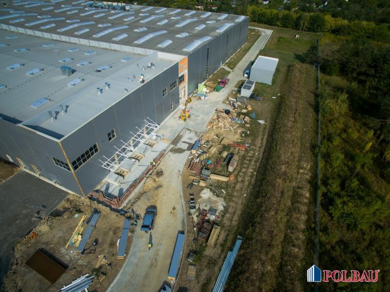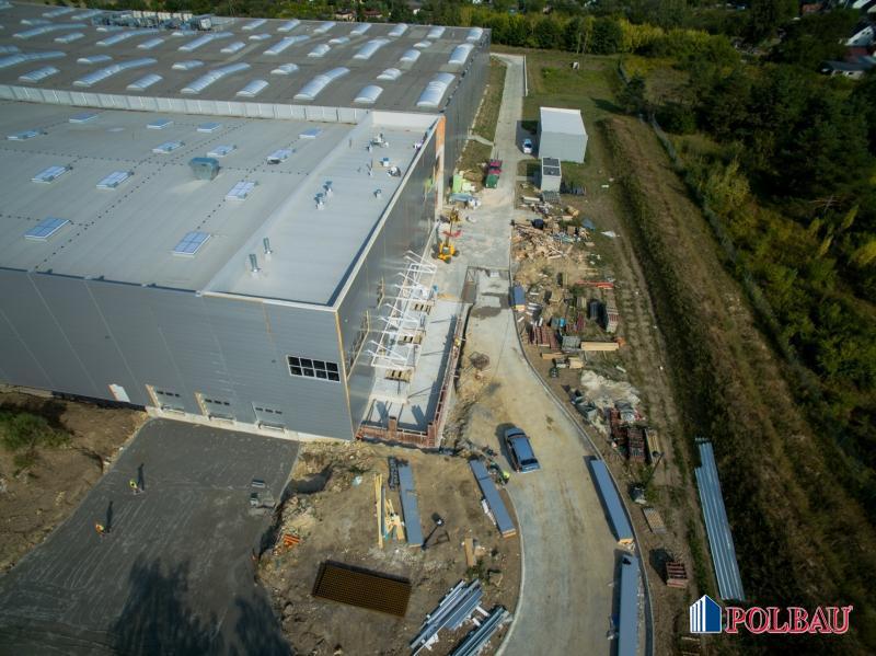Kilka ujęć z budowy hali produkcyjnej z częścią socjalno - biurową oraz budynkiem technicznym w Strzelcach Opolskich.