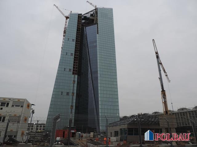 Budowa Europejskiego Banku Centralnego rozpoczęła się od robót przygotowawczych w 2008 roku, natomiast główne prace budowlane rozpoczęły się wiosną 2010 r. Najpierw wykonane zostały prace konstrukcyjne, a następnie montaż elewacji i prace wykończeniowe, w tym instalacje.