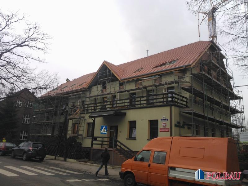 Dachgeschossausbau als auch Dachkonstruktionsumbau werden durchgeführt. Das Treppenhaus mit Flugwegen wird gemäß Brandschutzvorschriften umgebaut. Zusätzlich wird ein überdachter Fahrstuhlschacht eingebaut.
