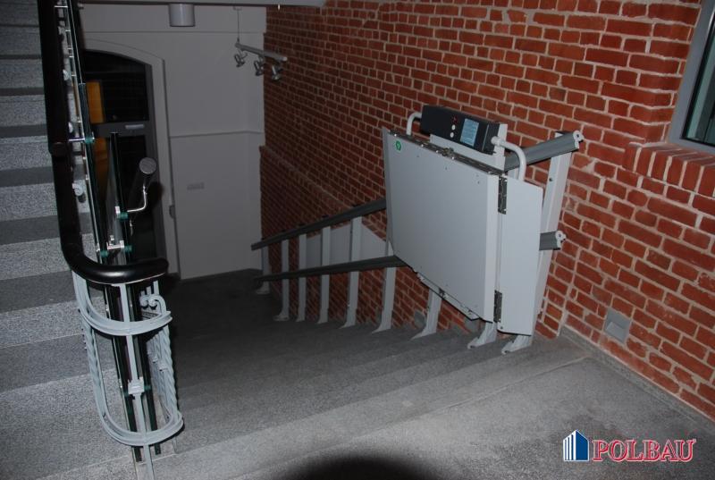 - Die Firma hat auch einen Fahrstuhl mit teilweise verglastem Schacht als auch zwei Behindertenrampen geliefert und montiert. Die Tragfähigkeit des neu montierten Kettenaufzugs beläuft sich auf 2000 kg,