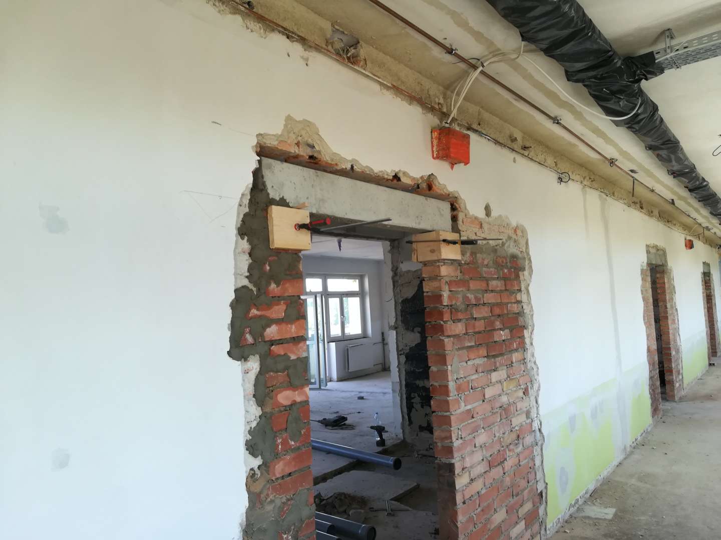 Zakres prac obejmuje: roboty rozbiórkowe, murarskie, dekarskie – dachowe, montaż konstrukcji stalowej, wykonanie instalacji wod. – kan. oraz CO, wykonanie instalacji elektrycznej wysoko i nisko prądowej, wykonanie Systemu Alarmu Pożaru (SAP), wykonanie instalacji RTV/SAT, wykonanie instalacji oddymiania, wykonanie instalacji systemu przyzywowego, montaż klap oddymiających, wykonanie instalacji wentylacji i klimatyzacji, montaż central i agregatów wentylacyjnych, wykonanie instalacji gazów medycznych, roboty wykończeniowe, wymiana stolarki drzwiowej (drewnianej, aluminiowej, PCV), wykonanie posadzek z wykładzin PCV oraz dostawę i montaż części wyposażenia.