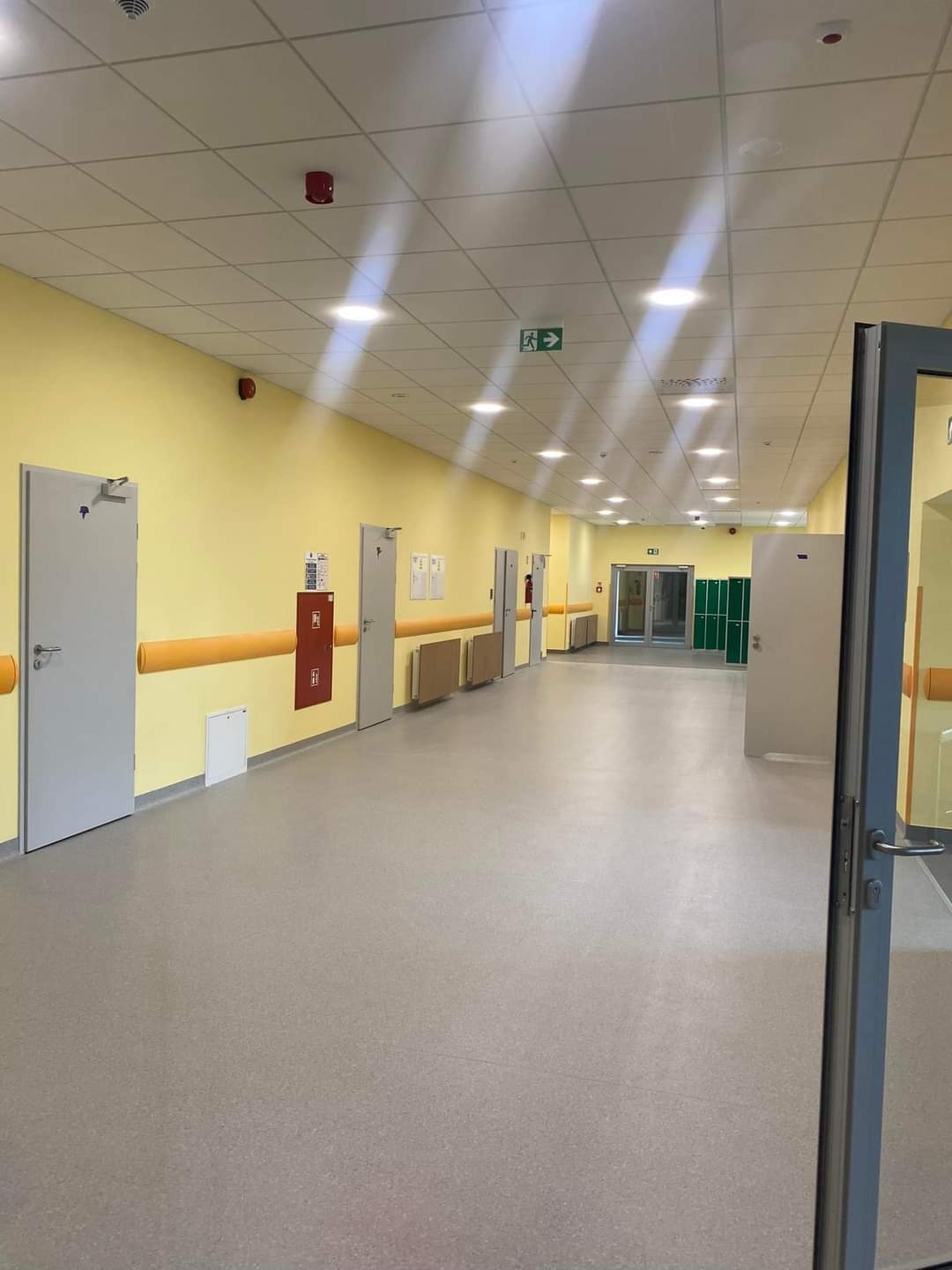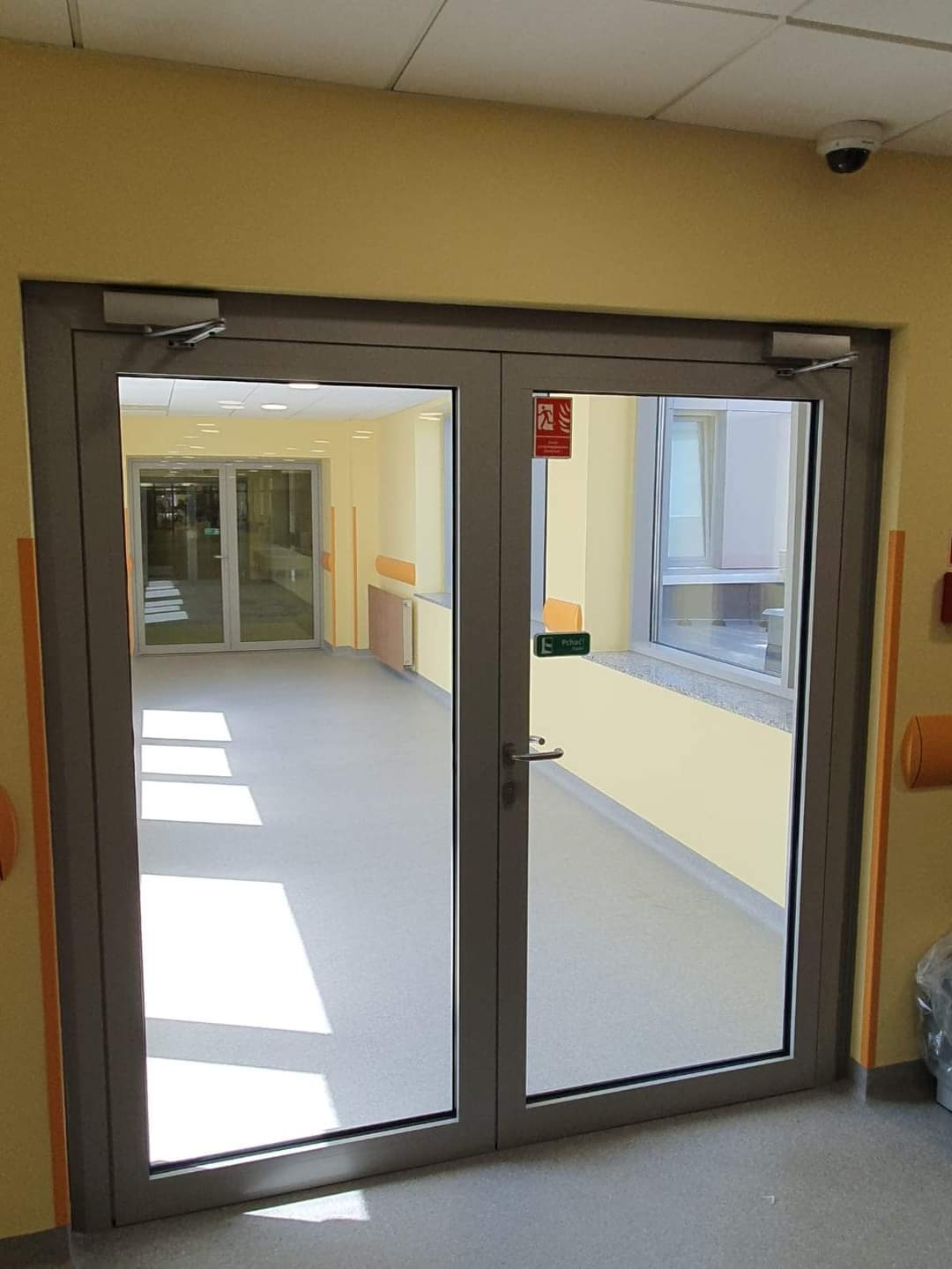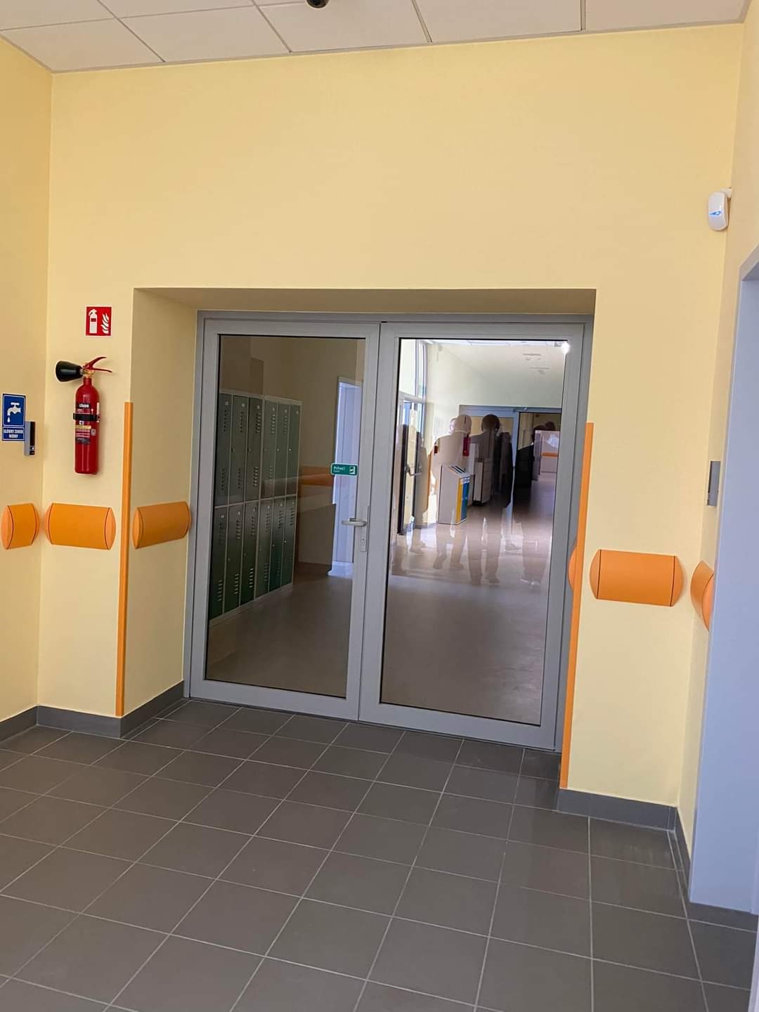 Projektuje się ciąg pieszo-jezdny, który jednocześnie jest drogą p.poż, jako przedłużenie istniejącej drogi biegnącej wzdłuż południowej elewacji istniejącego budynku szkolnego, wykończony kostką brukową szarą.