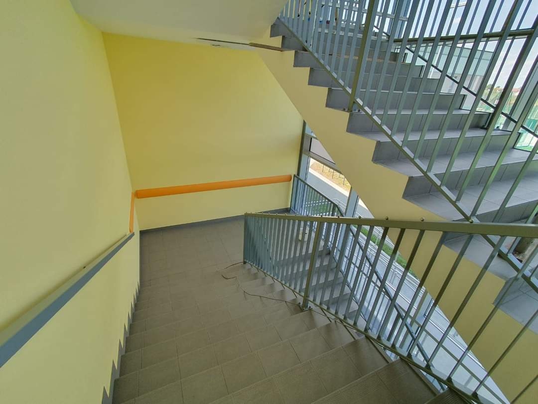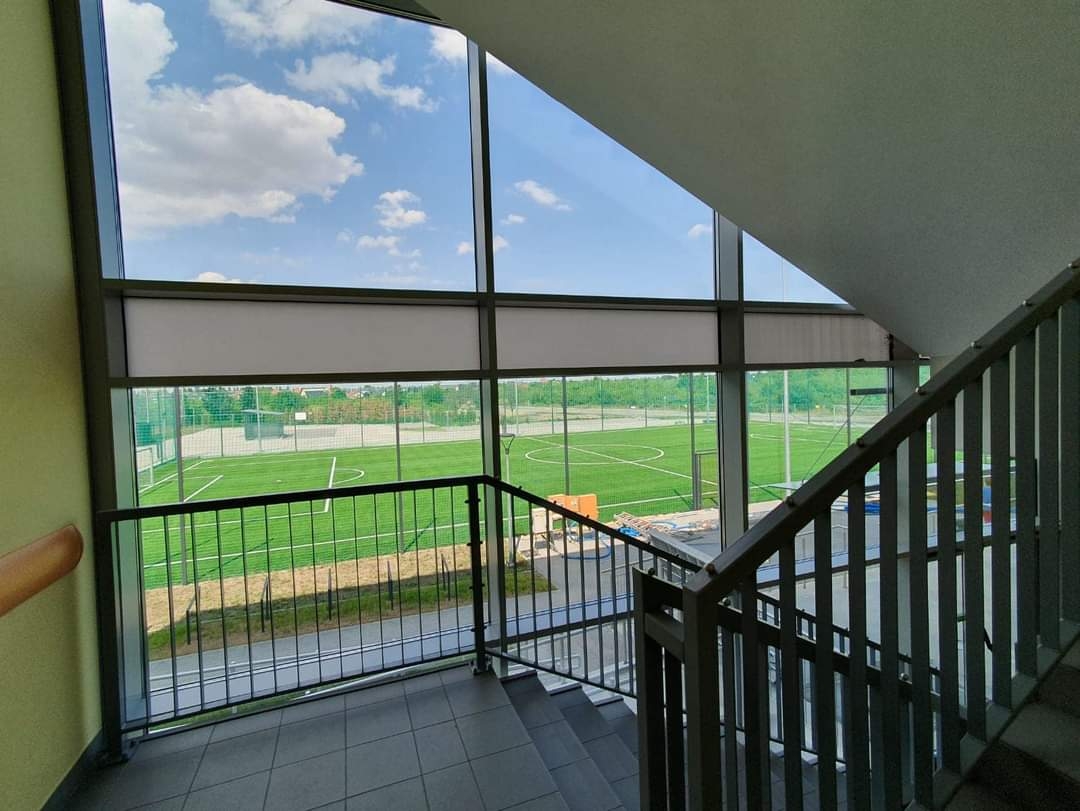 Przewidywana jest przebudowa istniejącej drogi wewnętrznej, ze względu na projektowanie łącznika naziemnego, który uniemożliwi przejazd po istniejącym utwardzeniu wzdłuż wschodniej elewacji istniejącego obiektu. Istniejący pas utwardzenia pomiędzy budynkiem istniejącym budynkiem szkolnym, a nowo projektowanym boiskiem zostanie zachowany jako dojazd techniczny.