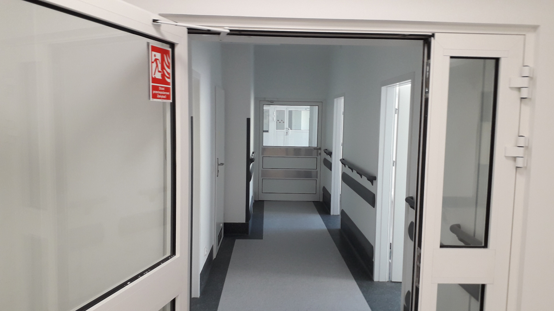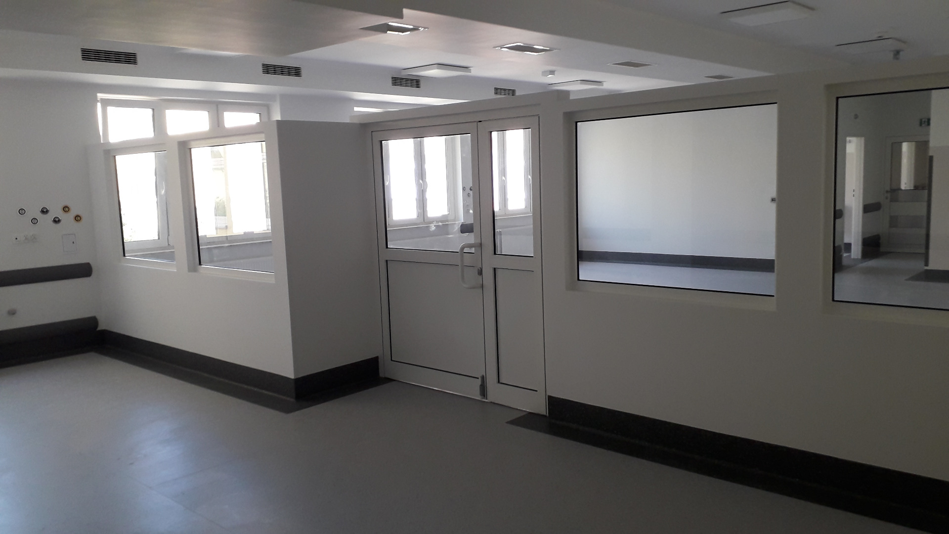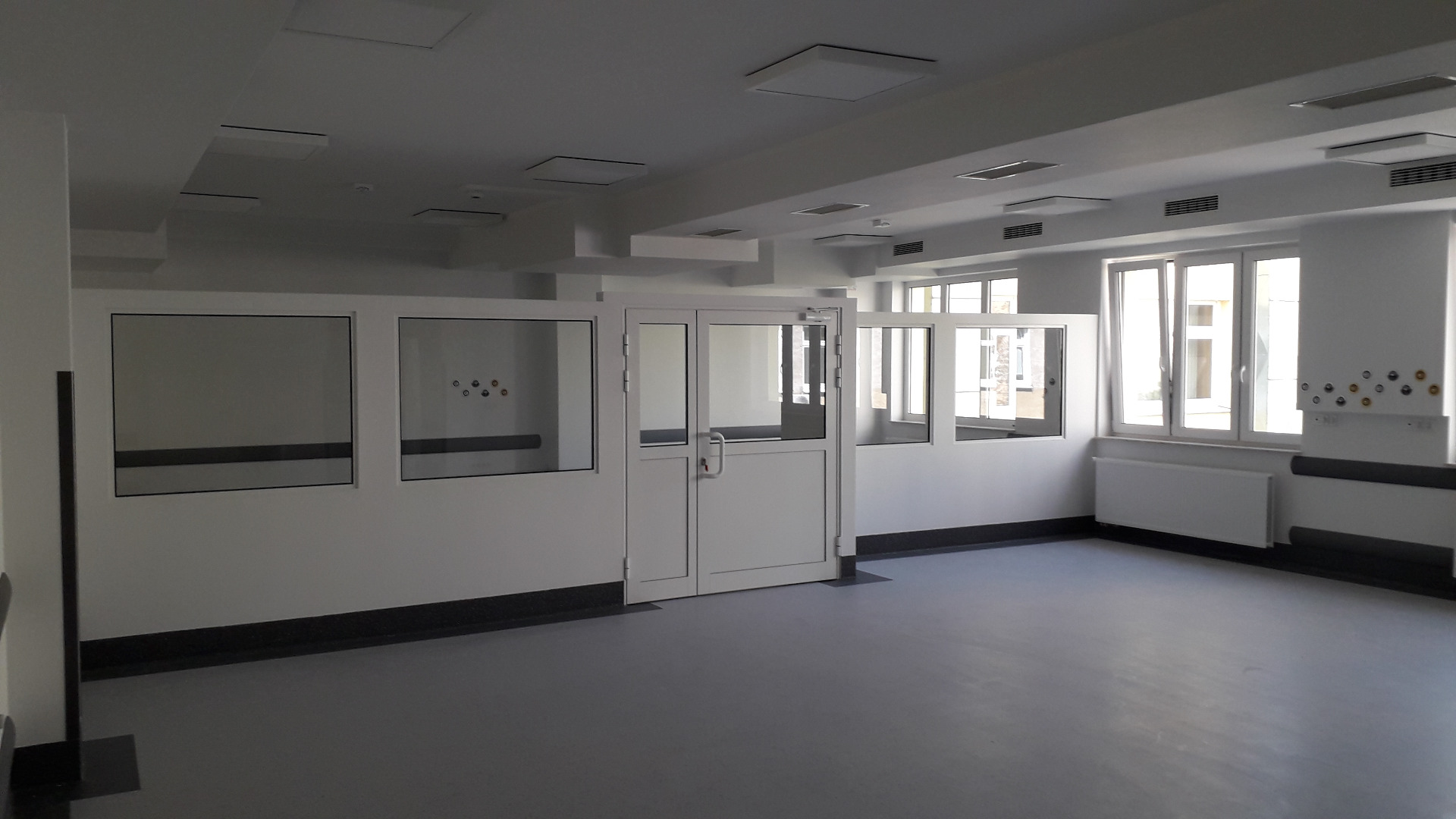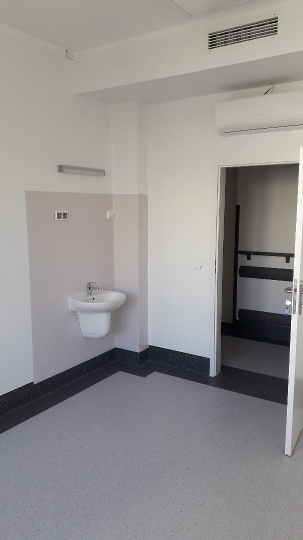 W ramach zadania zostały przygotowane pomieszczenia na cele tymczasowego oddziału SOR, przebudowane pomieszczenia istniejącego oddziału SOR oraz wybudowano dodatkowy budynek wewnątrz atrium. Posadowienie budynku wewnątrz atrium -5,1m, ławy i sciany fundamentowe żelbetowe, ściany murowane, strop żelbetowy typu filigran, stropodach - drewniane dźwigary. Wykonano inst. wentylacji mechanicznej, inst. klimatyzacji, inst. elektryczne silnoprądowe, inst. kontroli dostępu, inst. SAP oraz oświetlenia awaryjnego. Prace prowadzone w czynnym budynku szpitala. Powierzchnia użytkowa oddziału około 1450,0m2.