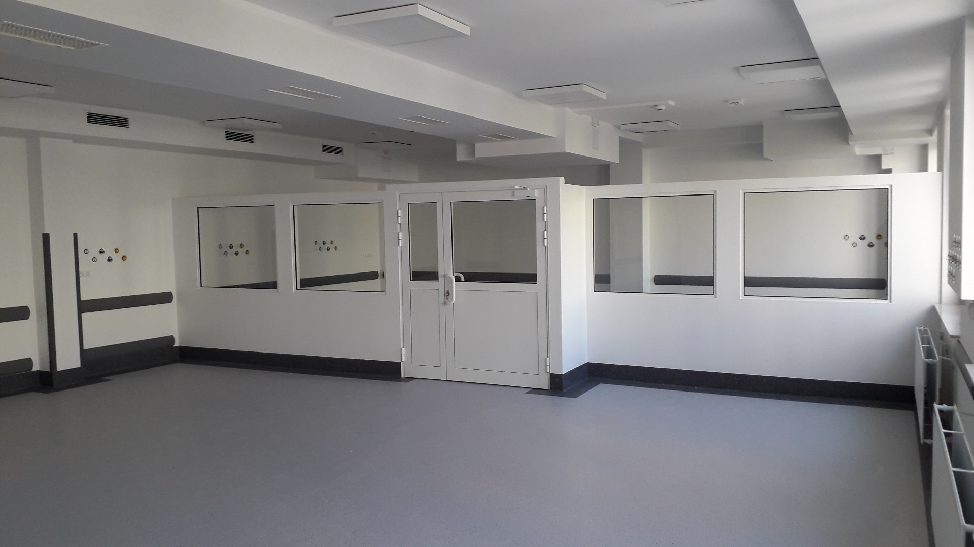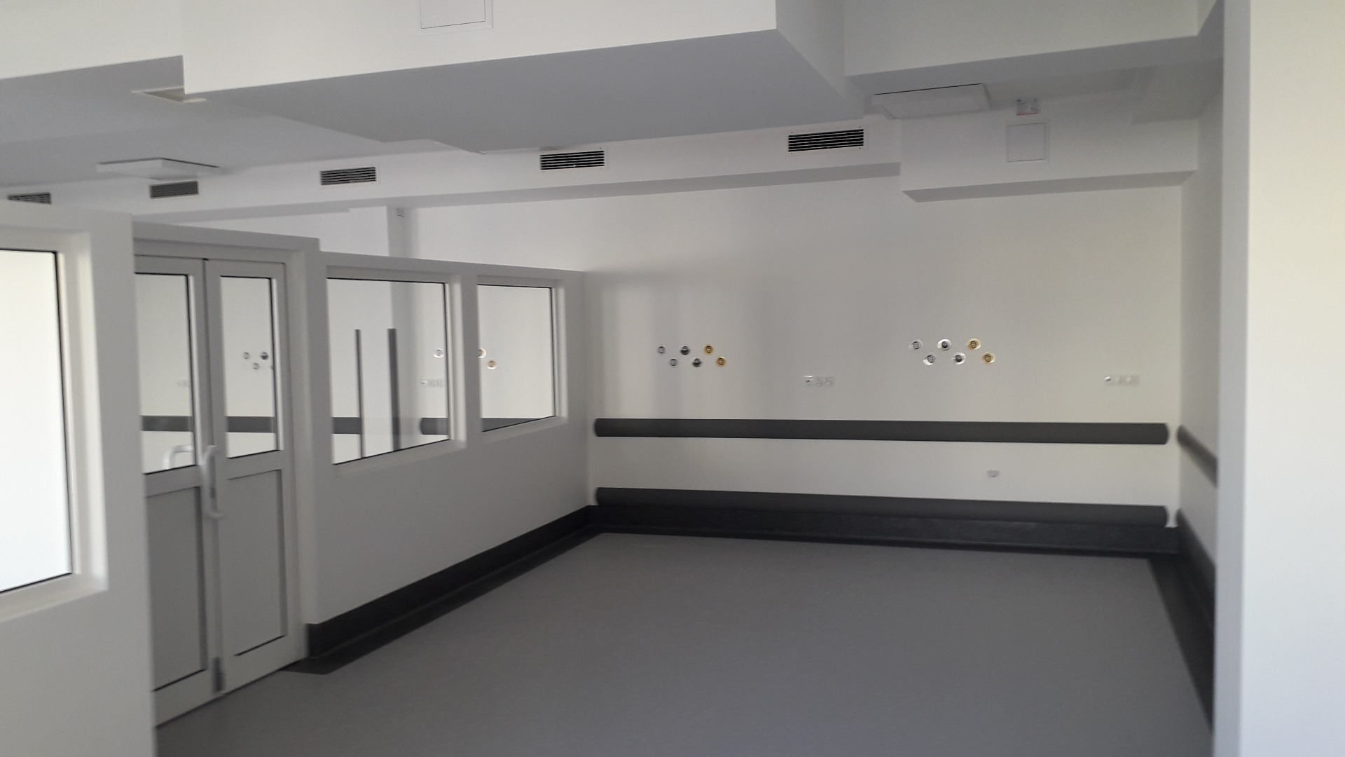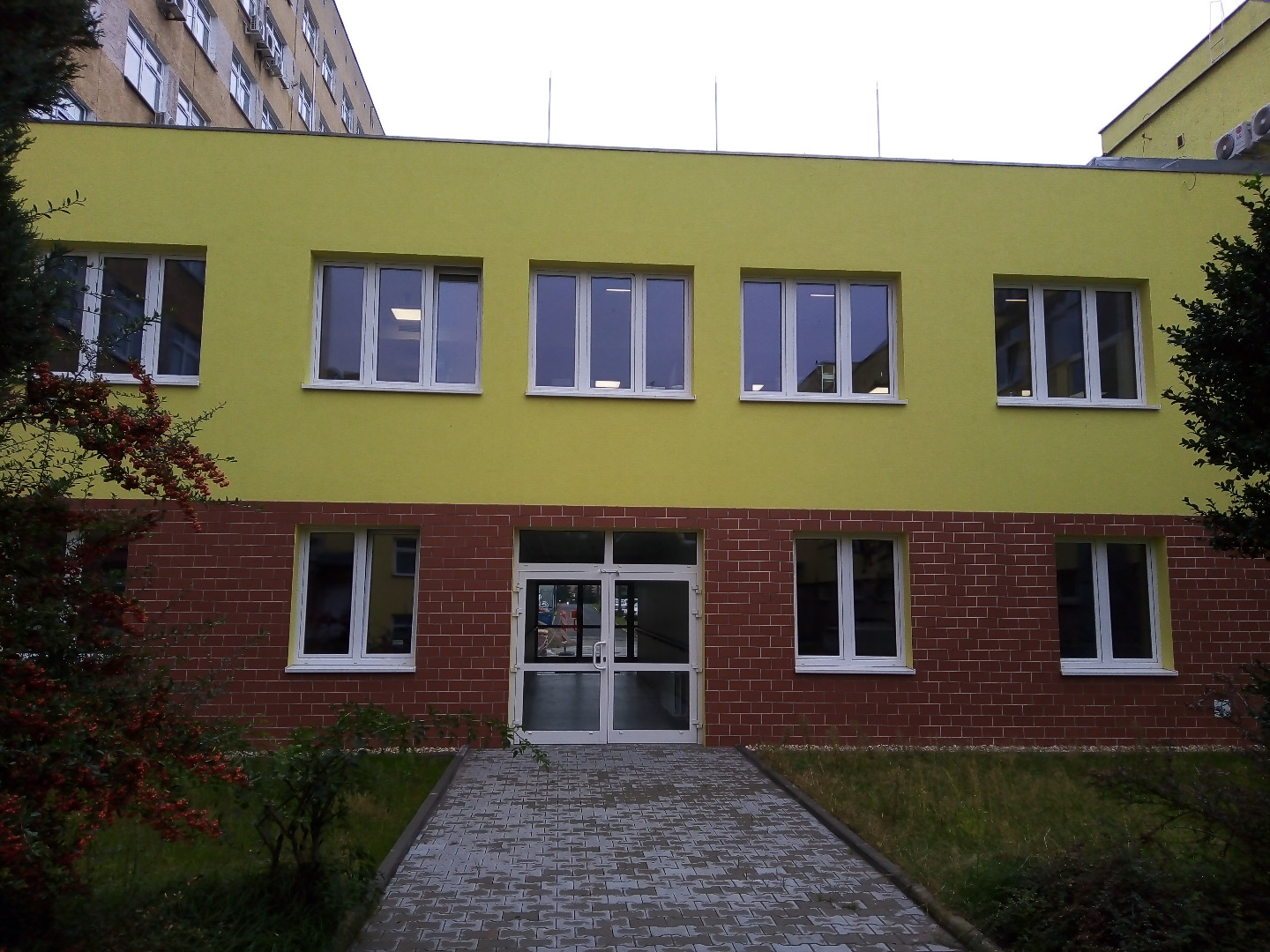 W ramach zadania zostały przygotowane pomieszczenia na cele tymczasowego oddziału SOR, przebudowane pomieszczenia istniejącego oddziału SOR oraz wybudowano dodatkowy budynek wewnątrz atrium. Posadowienie budynku wewnątrz atrium -5,1m, ławy i sciany fundamentowe żelbetowe, ściany murowane, strop żelbetowy typu filigran, stropodach - drewniane dźwigary. Wykonano inst. wentylacji mechanicznej, inst. klimatyzacji, inst. elektryczne silnoprądowe, inst. kontroli dostępu, inst. SAP oraz oświetlenia awaryjnego. Prace prowadzone w czynnym budynku szpitala. Powierzchnia użytkowa oddziału około 1450,0m2.
